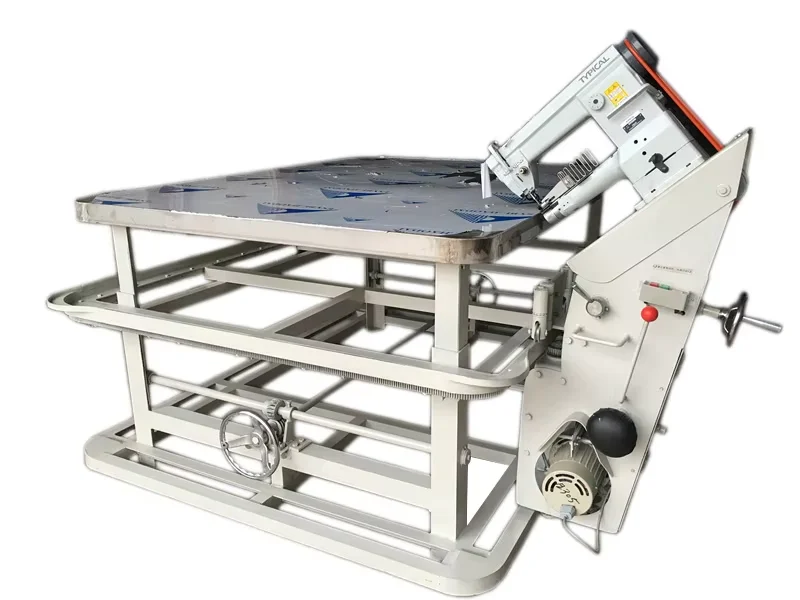 This machine is mainly used for mattress tape sewing.Themain advanceis sewing head need not moving,but the lifting machine can