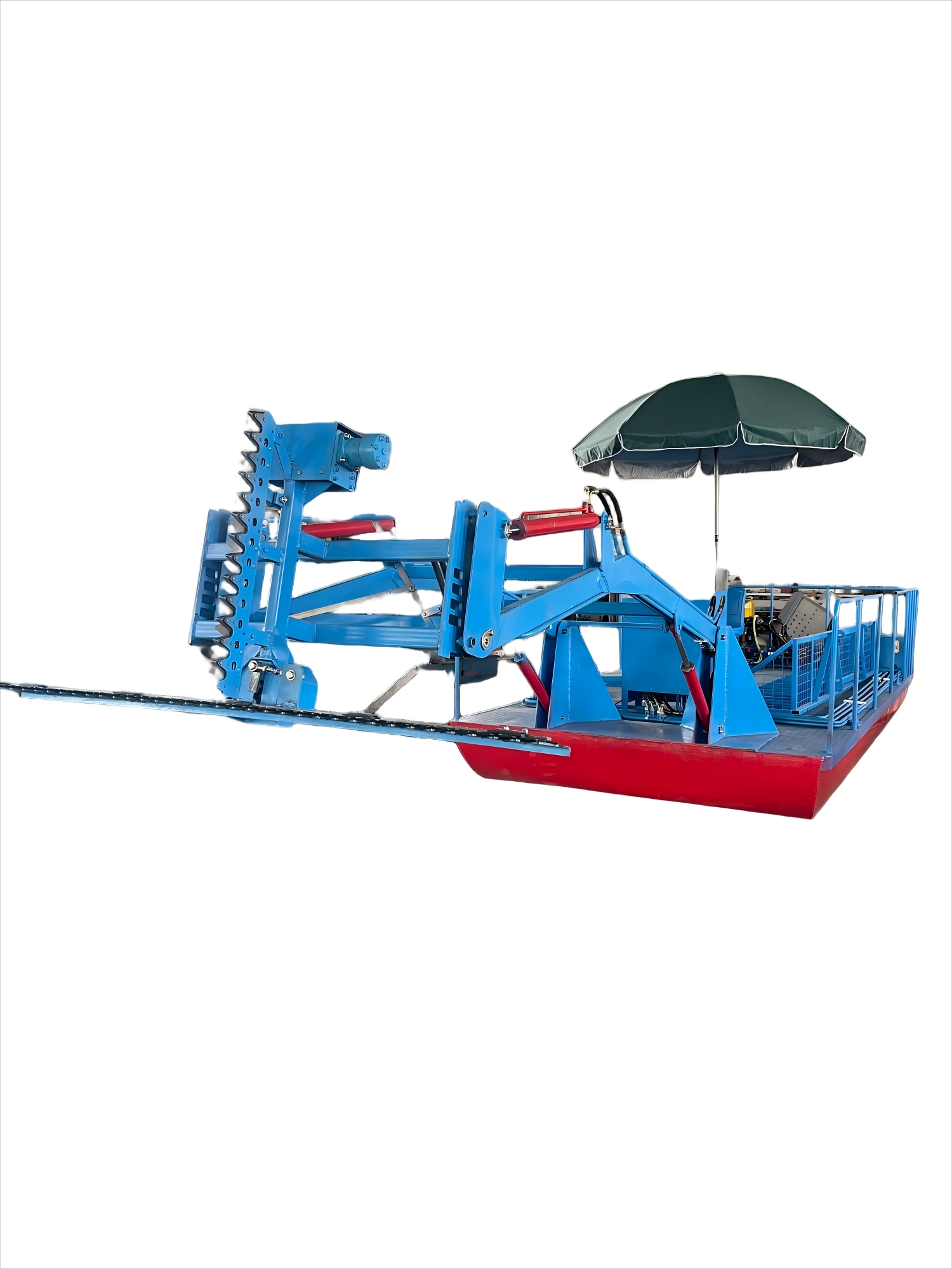 The vertical blade can cut water peanuts, green grass, water hyacinth, and angular vines.