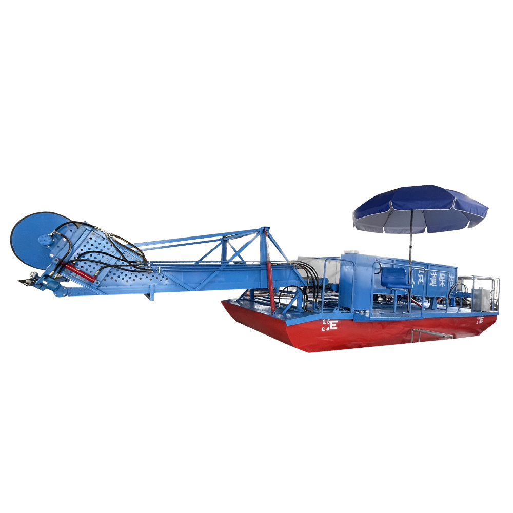 Fully Automatic Steering Hydraulic Underwater Vegetation CutterStructural DimensionsFloatation Tank5m(L)×2.2m(W)×0.6m(H) With anti-slip checkered plate surface treatmentOverall DimensionsTotal length: 8.2m Includes extendable cutting arm lengthGrass Collector Capacity3m(L)×