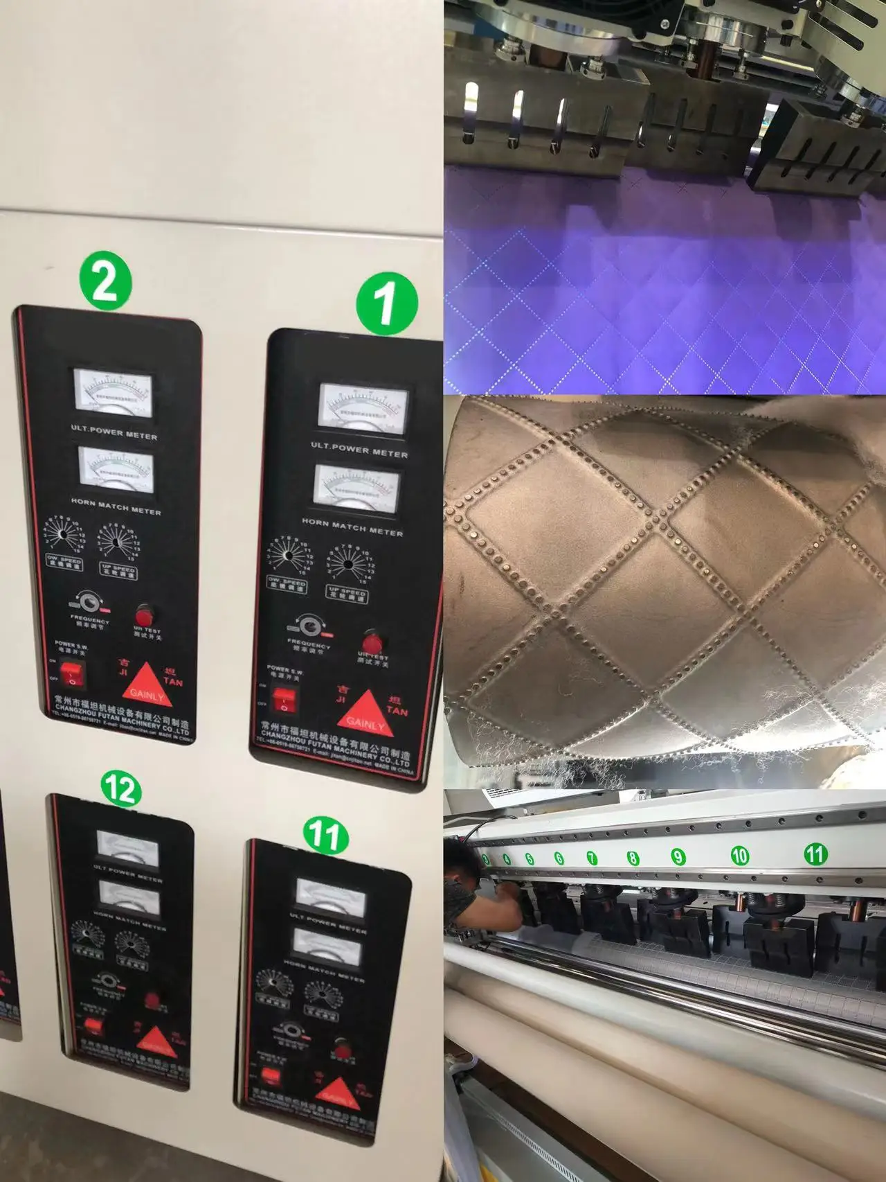 Finished ProductsFeature:Working with noneedles replacing the sewing threads. Patterns can be changed freely...Working effective width of the fabric: 1000--3000mmFunction:molding,welding,sealing,bonding, embossing, bronzing,etc.Suitable material :composite material, thermopla