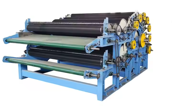 Uses and Characteristics:To fold and pave the mesh after carding evenly into certain width and thickness.Then transfer it to next procedure after pressurization. All paving aprons are driven separately for easy adjustment.The reciprocal commutation is controlled by frequency conversion,and the rail is proof against oil leaking.